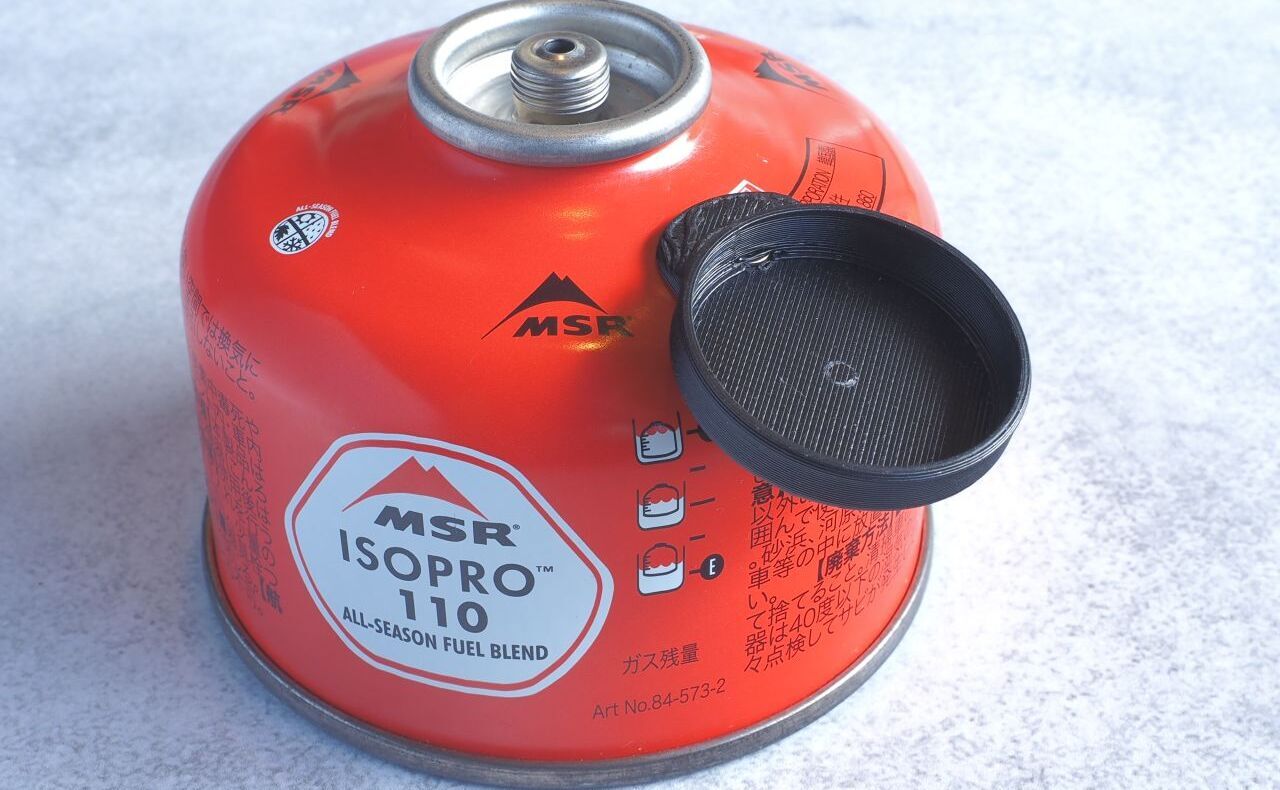もう失くさない、ガス缶に貼りついて離れないキャップ。